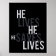 He Lives. He Saves. He Saves Lives Poster. Modify the background color to suit your needs.