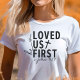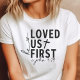 Celebrate your faith with our He Loved Us First shirt. Featuring the powerful message "He Loved Us First" from 1 John 4:19, this design is perfect for those who want to express their belief in Jesus' unwavering love. Ideal for casual wear or as a thoughtful gift for friends and family who cherish their faith.