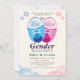 Designed in a charming watercolor style with blue and pink baby booties and balloons, this invitation is perfect for a gender reveal party, baby shower, or family celebration.