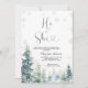 He or She Snowflakes Pine Trees Winter Gender Reveal Invite