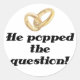 He Popped the Question Classic Round Sticker