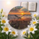 Christian Faith cross with black cross over the ocean with a sunset and the text