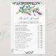 Lavender bridal shower game. This design features a watercolor illustration of purple lavender flowers and eucalyptus foliage.