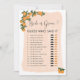 Vibrant bridal shower game featuring original hand-painted illustration of fresh citrus oranges and greenery foliage