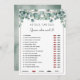 He Said She Said Eucalyptus Bridal Shower Game In Invitation
