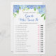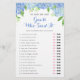 This bridal shower game is a He Said, She Said guess who said it game. It features a watercolor blue hydrangea floral design. You can personalize the text with your own questions. Matching bridal shower party supplies available.