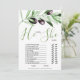 Add a touch of fun and elegance to your bridal shower with our He Said She Said Olive Branches Card, designed to spark laughter and connection among your guests. The soft olive branch accents create a natural and sophisticated look, perfectly suited for rustic, boho, or modern themes. With its playful prompts, this game card encourages lighthearted moments as friends and family guess the groom’s or bride’s answers. The timeless greenery design adds a fresh and calming vibe, making it a charming addition to your event décor. Crafted on quality cardstock, it offers a smooth writing surface and durability for keepsakes. The stylish layout ensures easy readability while keeping the focus on the fun. Guests will love participating in this interactive activity, creating memories that the bride will treasure. This card is an ideal blend of charm, entertainment, and elegance.