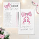 This bridal shower game is a He Said, She Said guess who said it game. The design features a glam silky pink bow with faux rhinestones. Personalize the back of the card with the bride's name. Matching products available.