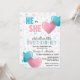 He/She Pink and Blue Hearts Gender Reveal Shower Invitation