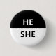 He/She Pronouns Black & White Badge Button