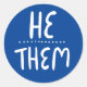 HE / THEM Pronouns Blue Handlettering Set of Classic Round Sticker