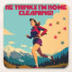 You're not home cleaning, you're out putting in the intervals. This funny design shows an old fashioned looking woman running in the mountains in the style of a vintage travel poster.