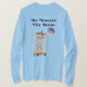 I love this shirt. I had written to the artist asking her if this picture was available on a shirt, and she wrote me back telling me where I could find the shirt. These shirts can be custom made to have a different saying. I loved this saying and went with it. The artist wrote me back later to tell me that she had seen my order go through. How's that for service? Pretty special. It's just as displayed. Perfect!