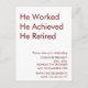 He Worked He Achieved He Retired Retirement Custom Postcard