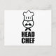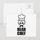 Head chef face & hat black design postcard