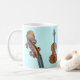 This mug shows a 150-year-old violin from my collection. Its peghead is carved in the likeness of Gaspard Duiffoprugcar and the back has an inlaid scene of his home town of Bologna, Italy. Duiffoprugcar has been credited as the inventor of the violin some 450 years ago.