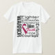 Head & Neck Cancer Warrior awareness t-shirts, merchandise & gifts featuring a collage describing the attributes of a cancer warrior. The design features text attributes of a warrior including the words Fighter, Determination, Perseverance, Believe, Faith, Hope, Defiant and Courage. This design is arranged in a cool distressed burgundy and white ribbon, collage text with mixed style fonts providing a unique flair to the design element.