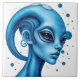 Head Of Blue Alien Closeup Sci-Fi Art Ceramic Tile