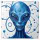 Head Of Blue Alien Closeup Sci-Fi Art Ceramic Tile