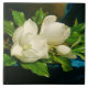 Beautiful vintage botanical fine art of Giant Magnolia Flower Blossoms on Blue Velvet by MJ Heade is on this Floral Ceramic Tile. Image is public domain due to expired copyright.