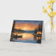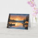 A fisherman heads back across a lake to his tent in the evening, as the sun sets and stars come out. A perfect Father's Day card for the outdoorsman!