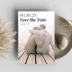 A clean and modern typography based save the date design, featuring a full vertical or portrait oriented photo with "save the date," your wedding date, names, and location aligned at the top left in classic lettering. Add additional details, like your wedding website, to the back.