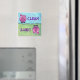 Animal Parade Pig Dirty Clean Diswasher Magnets feature our original art of a cute pink pig coming and going. One half has a textured green field on with the cute pigs behind and the word Dirty in purple, and on the other half is the humorous pink pig in front of a textured blue background with the wordl Clean in purple. A wavy green border separates the two. This fun farm animal art painted by our talented children's illustrator, Traci Van Wagoner, is perfect for pig lovers, pig farmers, and humorous animal art lovers of all ages. Join the Animal Parade and bring a smile to the face of someone you love with a gift of our funny pink pig.