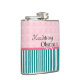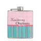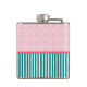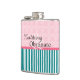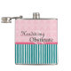 Jane Austen fans will recognize this reference! Turquoise and rose coloring, with a mix of stripes and brocade. A very feminine flask.