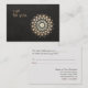 Vector illustration of gold leaf mandala inspired motif on digital image of black linen background. Original illustration by Maura Reed. A versatile elegant coupon card appropriate for many different holistic and alternative medicine professions.