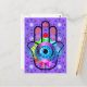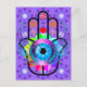 A Hamsa with healing and protective imagery: blue eye protection against "evil eye", OM symbols, a heart, wings and energy spirals
