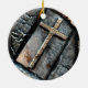 Lightweight, smooth, pure white ornament with nice sheen. Perfect size to be seen from across the room ... and to attract closer inspection! Price was great for ordering enough for the whole family! Clear, bold black design just as requested. Matches the order exactly. Just so nice!