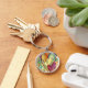 The keychain art features overlapping hearts in a rainbow of colors. The heart images are both drawn and painted in watercolor. A single large heart is in the center. The art is a tribute to the healing power of giving and receiving love in our lives.