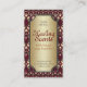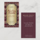 Product promotion Business Cards : Arabesque eastern Batik inspired pattern traditonal vintage colours - deep plum red with light yellow on metallic gold effect customizable text area - this business card template has plenty of space to add your details - great for businesses and occupation within the health & beauty, spa, therapeutic, clairvoyant, yoga, reiki, massage, just to name a few plus also the arts, fashion, hospitality + more. Fully customizable