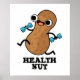 Health Nut Funny Exercise Peanut Pun features a cute peanut exercising . Perfect pun gift for family and friends who love cute peanut puns.