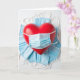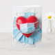 his thoughtful card features a bright red heart gently covered by a light blue surgical mask, symbolizing love paired with care and protection. The mask fits neatly across the heart, creating a strong visual message of safety and compassion. The bold red heart stands out against the cool blue mask and the crisp white background. Even lighting keeps every detail clear and balanced.