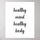 A motivational poster featuring the phrase 'healthy mind healthy body'. It draws our attention to holistic wellness. The phrase reminds us of the importance of balance and harmony between the mind and body. The calligraphic text is set against a white background. Inspirational and stylish wall art.
