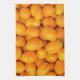 Heap of orange kumquats in cardboard box towel