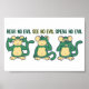 3 Wise Monkeys - Hear No Evil, See No Evil, Speak No Evil. With three cute green with blue and yellow / beige chimpanzee monkey graphics.