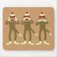 The classic hear no evil, see no evil, speak no evil monkeys. Not just any monkey though, sock monkeys!
