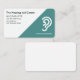 Modern hearing aid center business cards with graphic of an ear and simple layout in a sleek modern design. Designed with an Audiologist in mind working at a hearing clinic or hearing aids store.