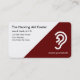 Modern hearing aid center business cards with graphic of an ear and modern template layout in a sleek modern design you can customize online. Designed with an Audiologist in mind working at a hearing clinic or hearing aids store for your staff.