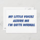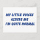 My little voices assure me I'm quite normal. Funny and silly quote about hearing voices.