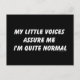 My little voices assure me I'm quite normal. Funny and silly quote about hearing voices.