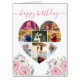 Heart 9 Photo Collage Pink Peony Big Birthday Card
