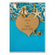 brown paper heart with seashells, flowers and starfish on turquoise wood for newlyweds