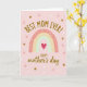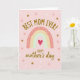 This Mother's Day card features a soft blush pink background with a stylized arch that feels like a gentle embrace, shaded in peach, cream, and mint green. At the center sits a deep crimson heart ❤️, drawing the eye like a quiet sign of closeness. Above the arch, “BEST MOM EVER!” is placed in an upward curve in golden-brown lettering, echoing the shape below. Beneath the arch, “HAPPY mother’s day” appears in flowing cursive-style lettering in the same warm golden-brown tone, adding a tender, friendly touch. Small white star-like marks and soft peach cross shapes are scattered around, giving the scene a light, celebratory sparkle 🌼. The arch bands are decorated with tiny white dots, crosses, and triangles, like careful little details that suggest care and affection without needing extra words. The overall layout keeps the text centered and balanced, with the curved headline above and the lower line tucked neatly under the arch. The heart sits inside the arch’s opening, with the patterned bands framing it against the blush field.