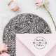 Romantic stamp for weddings and engagements with the happy couple's names in pretty calligraphy script inside a circle with an arrow with a heart in the middle.