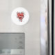 Well Designed High Quality Magnet. Colors are Vibrant Clear Excellent good size Diameter Circumference Fonts Red Folio Bold Clover Green Outline Puffy White Interior Image