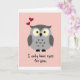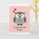 Designed with a sweet digital illustration, the card centers on a simplified bird-like creature posed calmly against a pale blush pink background. The creature is shaded in soft gray tones, with slightly darker gray accents on the wings and a few small heart-shaped marks on its chest that suggest a tender, affectionate nature ❤️. Its large, glowing yellow eyes look straight ahead with a devoted, attentive gaze, as if focused on someone special. Two bright red hearts rise upward from the top of its head, adding a gentle romantic cue without crowding the scene. The background stays smooth and uncluttered, letting the character and hearts stand out clearly. Beneath the creature, the phrase “I only have eyes for you” is placed near the bottom center in dark lettering that contrasts against the pink, easy to read at a glance 🌼. The two red hearts float just above the creature’s head, angled slightly as they drift upward.