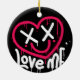 heart character with dead eyes and smile sprayed ceramic ornament